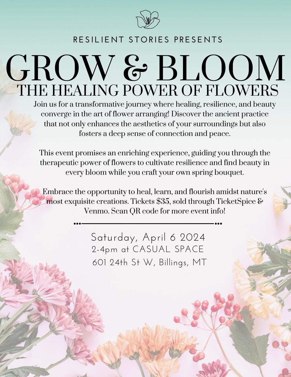 Discover the therapeutic art of flower arranging with our comprehensive “Grow & Bloom” digital toolkit. Designed for those seeking to host a workshop on the journey of healing and resilience through the beauty of flower arranging.