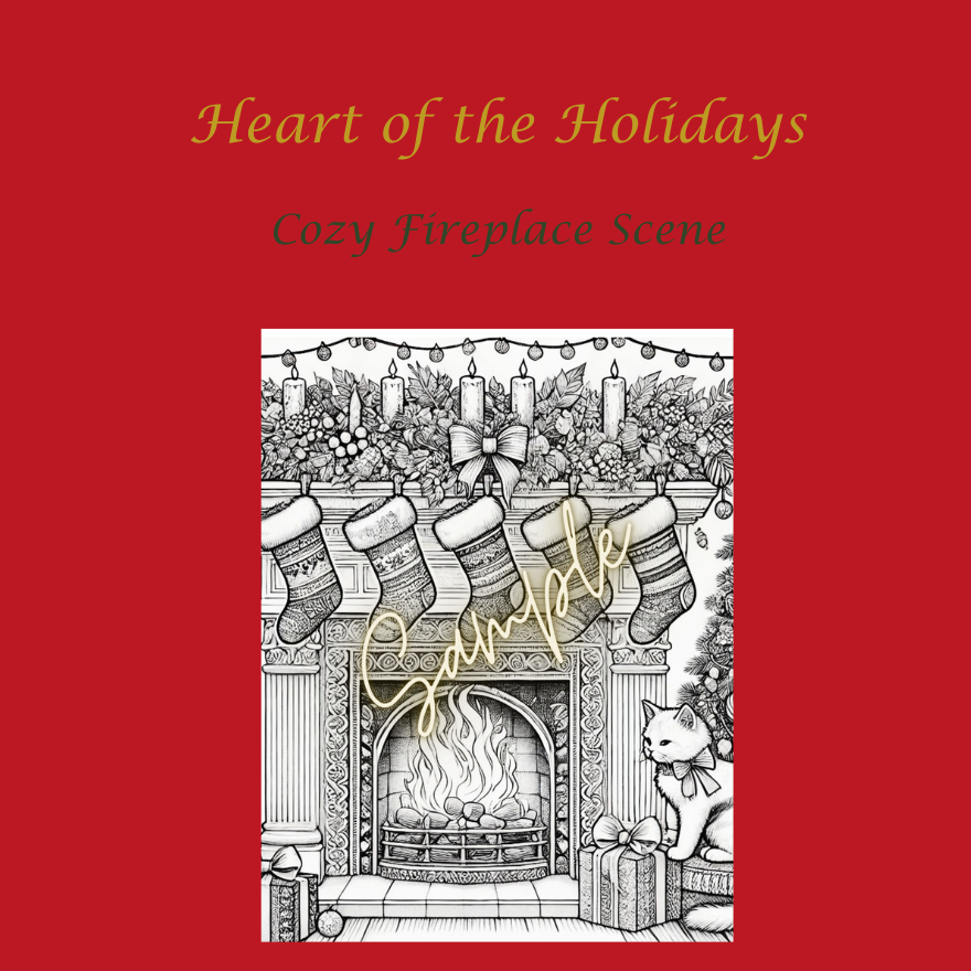 Christmas Coloring Pages Heart of the Holidays: Cozy Fireplace Scene